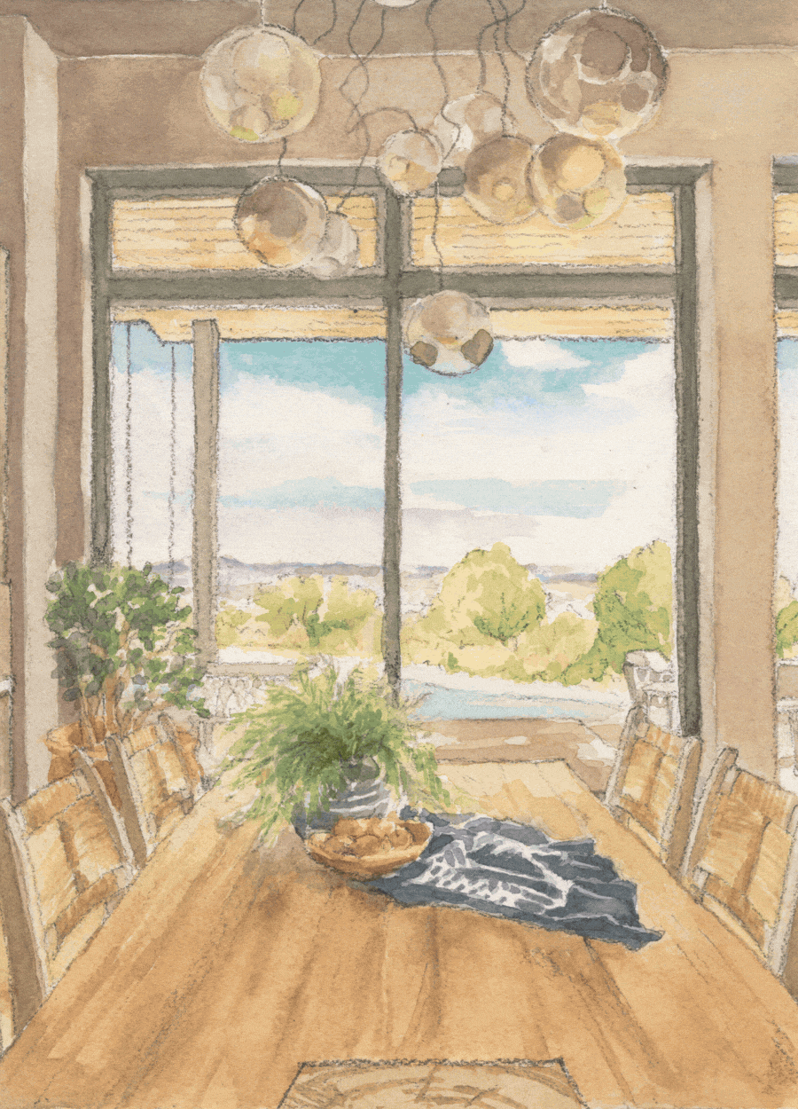 Inspired by the way natural materials and structure shape experience, this Wabi-Sabi–inspired residence reinterprets a Japanese-influenced Craftsman ethos for a contemporary New Mexico setting. Rooted in a Monozukuri sensibility, the home embraces beauty grounded in material integrity and the act of making, with honest finishes and intentional simplicity creating interiors that feel calm, tactile, and inherently livable. Designed for owners who love to cook and gather, the kitchen serves as the heart of the home, anchored by custom dark-stained cabinetry with pronounced cathedral grain, porcelain countertops, and softly textured limewash walls that diffuse the desert light. Throughout, handcrafted elements—including custom millwork, wood doors, and artisan-made furnishings—reinforce a sense of quiet craftsmanship, while sculptural lighting, framed views, and intimate seating moments create a home that feels both refined and effortlessly lived-in.